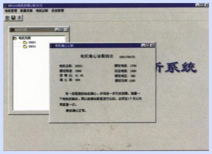 本軟件模塊具有專家系統(tǒng)功能,自動(dòng)診斷大、中型交流異步感應(yīng)電機(jī)轉(zhuǎn)子故障(轉(zhuǎn)子斷條、轉(zhuǎn)子端環(huán)斷裂、轉(zhuǎn)子高阻接頭、鑄鋁轉(zhuǎn)子中的鑄造間隙和氣泡、繞線式轉(zhuǎn)子中的不良銅焊接頭)及交流異步(或同步)感應(yīng)電機(jī)轉(zhuǎn)子與定子的偏心故障(不均勻氣隙、磁吸力不平衡、機(jī)械不平衡、轉(zhuǎn)子熱彎曲、軸承磨損)。該系統(tǒng)采用在電機(jī)正常工作(不停機(jī))條件下,利用電流傳感器檢測電機(jī)的工作電流(低壓電機(jī)檢測主回路,高壓電機(jī)檢測二次回路)。通過電流頻譜分析,自動(dòng)給出故障診斷報(bào)告,定量告知故障嚴(yán)重程度,故障發(fā)展趨勢,建議采取的維護(hù)措施,并可預(yù)測電機(jī)的可靠運(yùn)行時(shí)間。