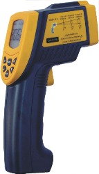 紅外測溫儀測量物體表面溫度,其光學(xué)系統(tǒng)匯聚被測物體的紅外輻射能量,匯聚到的能量聚焦在光電探測器上并轉(zhuǎn)變?yōu)橄鄳?yīng)的電信號,該信號經(jīng)電路轉(zhuǎn)換變?yōu)樽x數(shù)顯示LCD屏幕上,本機(jī)配備的激光燈能有效的對準(zhǔn)被測物體及提高測量精度。