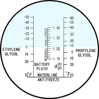 型號:RHA-503C 這種型號可以測量以乙二醇和丙二醇兩者為基的防凍系統(tǒng)的冰點.它還可以檢查蓄電池內(nèi)電解的比重及使用狀態(tài)。其冰點值以華氏溫度(°F)標定
