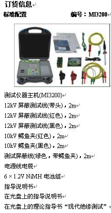 MI3200 大功率高電壓數(shù)字兆歐表 ,主機(jī);測(cè)量導(dǎo)線, 測(cè)試探針, 掛帶,操作手冊(cè)