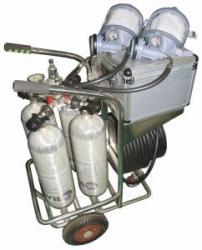 SP-98 車式長管呼吸裝置 SP-98車式長管呼吸裝置,是一種采用車載貯氣瓶、長膠管輸送氣體供操作者呼吸用的正壓式呼吸裝置。企業(yè)標(biāo)準(zhǔn)Q/HDKLA012-2003,參照歐洲標(biāo)準(zhǔn)EN132制定。 SP-98安全可靠、使用、維護(hù)簡便,可供給兩名操作者同時(shí)使用。由于采用車載式,SP-98能夠很方便地移動(dòng)至離操作現(xiàn)場(chǎng)最適宜的位置,4個(gè)氣瓶可以同時(shí)或者單獨(dú)使用,并在使用過程中更換其中任意一只氣瓶。它特別適用于狹窄的工作場(chǎng)合,如罐體內(nèi)部、船艙、地下管道、密閉空間等,在石化、冶金、消防、航天、核工廠、化工廠等需長時(shí)間在毒氣環(huán)境及貧氧環(huán)境中工作的場(chǎng)合被廣泛使用。注意:在使用中必須有一人監(jiān)視呼吸裝置的使用情況,及時(shí)換接氣瓶。 主要特點(diǎn)