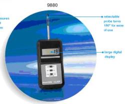 這些袖珍型儀表在使用時只需要很少的培訓。它們是進行通風櫥、噴霧間和通風系統(tǒng)的面速度測量以及進行室內(nèi)空氣檢查的理想工具。 9880 具有一個