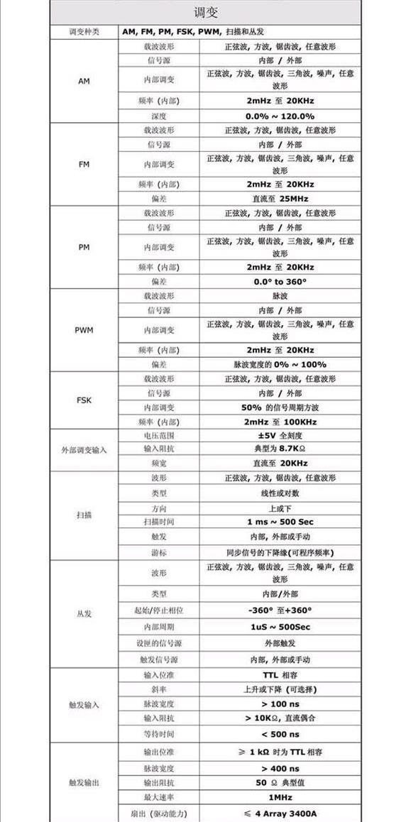 SM,FM,PM,FSK,及PWM等調(diào)制類型  |