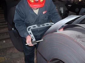 該系列測(cè)量尺主要用來測(cè)量與檢驗(yàn)帶鋼卷在不展開狀態(tài)下的中間部位的寬度尺寸。  |