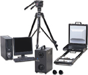 如左圖所示,系統(tǒng)圖片中的PC和顯示器均為市場(chǎng)銷(xiāo)售產(chǎn)品,三角架是另售的附帶品。