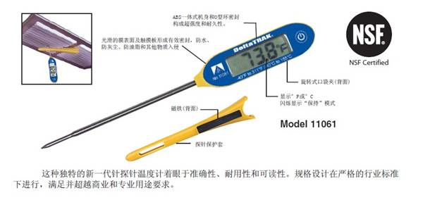 DeltaTRAK 大屏LCD顯示自動校準(zhǔn)針探針溫度計FlashCheck