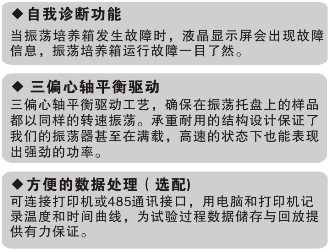 ●箱門(mén)丹啟時(shí),微風(fēng)循環(huán)、加熱和搖床自動(dòng)停止,無(wú)溫度過(guò)沖之弊。