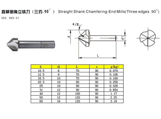 - 儀器名稱(chēng):直柄倒角立銑刀(三刃·90°)