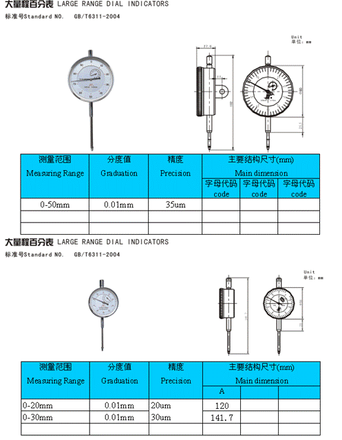 - 儀器名稱:大量程百分表