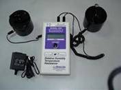 二、表面電阻測量(點(diǎn)對點(diǎn)) (Surface Resistance Measurement (RTT)) 這個(gè)測量方法是符合EOS/ESD-S4.1測量要求來測量獨(dú)立于接地的兩點(diǎn)之間的電阻,用這個(gè)測量方法得出的測量結(jié)果與被測物體的處理、兩個(gè)5磅探頭之間的距離等因素有關(guān),因此,應(yīng)選擇正確的測量規(guī)程,每次在同樣要求的測量條件下進(jìn)行測試。 A、將連線插頭插入表的兩個(gè)3.5毫米插孔,并將香蕉插頭與兩個(gè)5磅重探頭相聯(lián)。 B、按照測量規(guī)程將兩個(gè)探頭放置在待測物體表面。 C、選擇所需的電壓值(10伏或100伏) D、按下開關(guān)直到顯示出所選的電壓值(10伏或100伏),繼續(xù)按著開關(guān)直至所測電阻(單位為歐姆),相對濕度和溫度顯示在液晶顯示屏上。