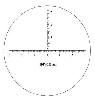 3 、本顯微鏡對準(zhǔn)觀察物在調(diào)焦清晰時,本顯微鏡刻度尺上的1小格等于實(shí)際尺寸