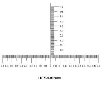 1、放大倍數(shù):150倍 2、物方視場:1.27mm 3、物方工作距離:5.1mm 4、系統(tǒng)長度:143mm 5、數(shù)值孔徑:0.3 6、系統(tǒng)焦距:-1.667 7、環(huán)境溫度:-20~50℃ 8、測量范圍長度:1.0mm 9、體 積尺寸: 50×23×138mm 10、測量分劃值:每小格0.005mm. 11、測量精度:±1%