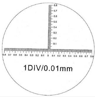 3 、本顯微鏡對(duì)準(zhǔn)觀察物在調(diào)焦清晰時(shí),本顯微鏡刻度尺上的1小格等于實(shí)際尺寸