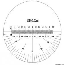目鏡最下面是35倍,目鏡最上(拉上來)面是50倍,分劃刻度尺分別是35倍和50倍對應刻度測量。目鏡可360°旋轉(zhuǎn)對應被看物,目鏡旋轉(zhuǎn)調(diào)整,可同時看清分劃尺和視野中的物體,可適應不同視力用戶使用。目鏡順時針方向旋轉(zhuǎn)可同時測量孔距、刻線寬度、刻線距離、鍵槽寬度、狹縫凹痕寬度、長度、金屬和非金屬表面質(zhì)量、纖維、織物密度、野外標本等,XK系列均可同時測量0~180°角度。