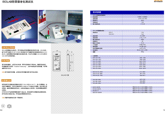 - 關(guān)鍵參數(shù):產(chǎn)品描述 ISOLAB防雷器老化測試儀,是用于絕緣電阻和防雷器性能測試的儀表。 使用選擇開關(guān)調(diào)整待檢測模塊的類型,插入防雷模塊,自動進行測量程序。 可顯示壓敏電阻在1mA或3mA下壓敏電阻的讀數(shù)。通過對照公差范圍表,查看防雷模塊是否老化,如果測試值超出公差范圍,或者超出產(chǎn)品出廠值的10%,則該防雷器需要予以更換。 對于非OBO產(chǎn)品則將防雷模塊置于引線之間,使用選擇開關(guān)調(diào)整到檢測模塊類型,則可檢測出壓敏電壓值,并知道該防雷模塊是否老化。