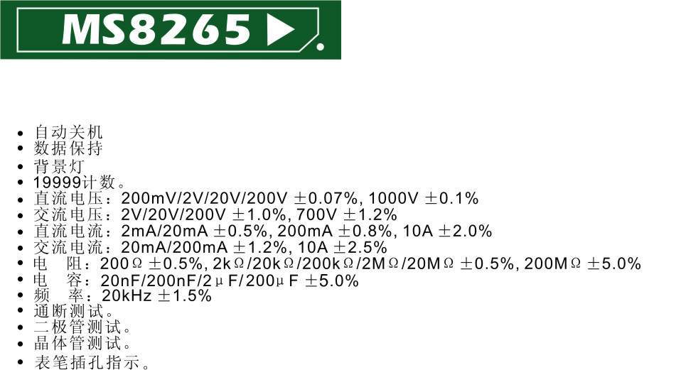 華誼儀表 MASTECH手持式數(shù)字多用表MS8265