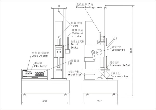 SD系列電子數(shù)顯彈簧拉壓試驗(yàn)機(jī)是測(cè)試?yán)臁?壓縮彈簧的變形量和負(fù)荷關(guān)系特性的專用儀器。適用拉伸、壓縮彈簧在一定工作長(zhǎng)度下的工作負(fù)荷的測(cè)試,也可用于橡膠、簧片等彈性器件的彈力負(fù)荷測(cè)試。具有高精度高分辨率;測(cè)試方向顯示;藍(lán)色背光燈顯示;上下限偏差值設(shè)定判斷,紅綠指示燈及蜂嗚器自動(dòng)聲光報(bào)警設(shè)置;可存儲(chǔ)10組測(cè)試數(shù)據(jù),自動(dòng)計(jì)算存儲(chǔ)數(shù)據(jù)的平均值;三種單位N、kgf、lbf自動(dòng)互換;具有峰值保持功能、峰值自動(dòng)解除功能及解除時(shí)間自由設(shè)定;無(wú)操作自動(dòng)關(guān)機(jī)的省電設(shè)計(jì),關(guān)機(jī)時(shí)間自由設(shè)定;內(nèi)置打印機(jī),可打印10組存儲(chǔ)的測(cè)試數(shù)據(jù)和最大值、最小值、平均值、合格或不合格值判斷等優(yōu)點(diǎn)。