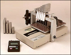 本儀器基于以下汽車(chē)標(biāo)準(zhǔn)設(shè)計(jì)(福特 BN 108-13; 通用 GMN3943; 戴姆勒克萊斯勒 LP-463DD-18-01), 通常有五個(gè)觸點(diǎn)。 儀器含有氣動(dòng)和可安裝樣品的傳動(dòng)裝置。傳動(dòng)裝置直線(xiàn)行走,有一個(gè)旋鈕控制。可用于一個(gè)或多個(gè)樣品通行檢測(cè) 。電子計(jì)時(shí)器顯示速度,可以通過(guò)改變空氣壓力來(lái)控制這個(gè)速度。 儀器支架支持五個(gè)獨(dú)立的花鍵桿,這樣可以為磨針加載連續(xù)垂直的力(磨針可互換,直徑1.0mm或7.0mm,為半圓型頭)。支架的手柄可控制它懸臂的高低,五個(gè)支撐架可使一個(gè)或更多懸臂移動(dòng)到不礙事的地方,從而觸碰不到測(cè)試中的樣本。 不同的重量塊狀在懸臂的上端,保證作用在樣品表面上的是標(biāo)準(zhǔn)大小的力。每套儀器含有的重量快有: 2N, 3N, 4N, 5N, 6N, 7N, 10N, 15N 和 20N 。另外還可購(gòu)得8N, 13N, 18N 和 25N的重量塊。. 盡管通常情況下22mm以?xún)?nèi)厚度的扁平樣品都能測(cè),但前提是樣品邊緣不要太厚,樣品不要太軟或固定得足夠好。標(biāo)配里含有帶彈簧的樣品固定裝置,它可以固定在樣品臺(tái)的邊緣,以獲得更好的機(jī)動(dòng)性。針對(duì)更厚的樣品,可以選購(gòu)"可移動(dòng)的"緊固夾。 儀器的標(biāo)準(zhǔn)配置: | |||||||||