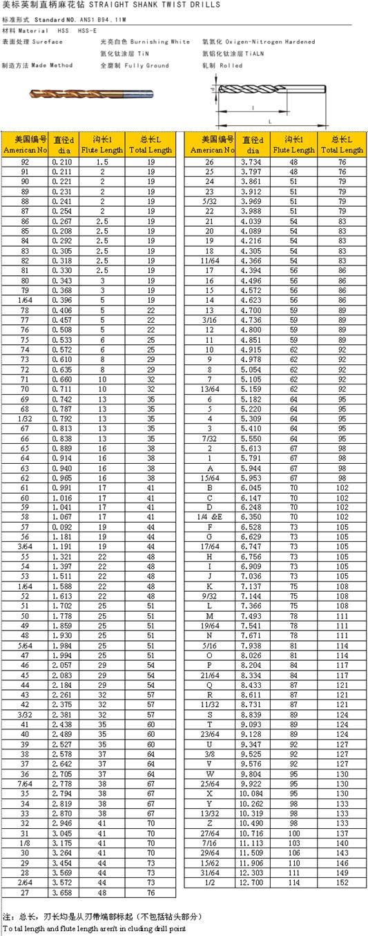 - 儀器名稱:美標英制直柄麻花鉆